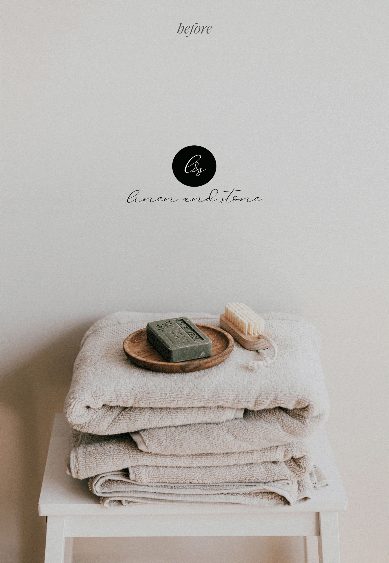 Linen and Stone's rebrand harmoniously blends textures, minimal illustrations, and curvy typography, mirroring the elegance and organic charm of their home decor products.